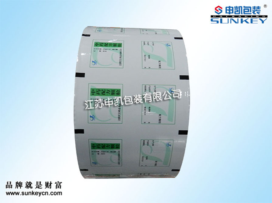 說明:顆粒鋁箔膜材質(zhì)一般是由PET/AL/PE組成,經(jīng)過印刷-檢品-復(fù)合-分切多層工藝。