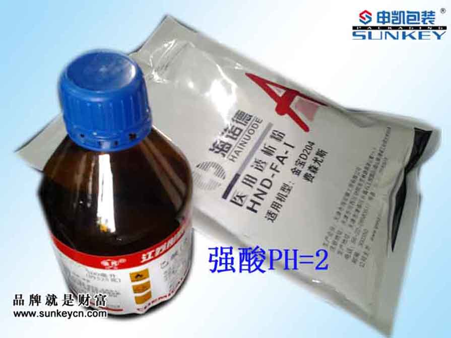 強(qiáng)酸產(chǎn)品(粉末、液體)包裝專用。PH值為2的產(chǎn)品專用外包裝袋。